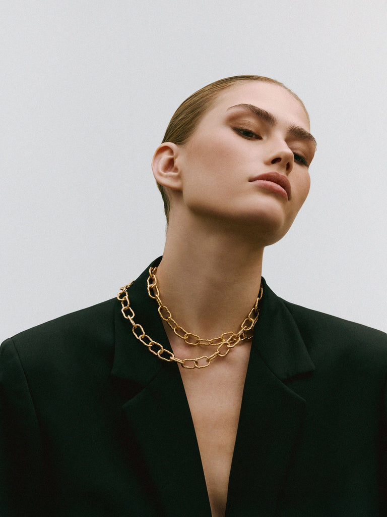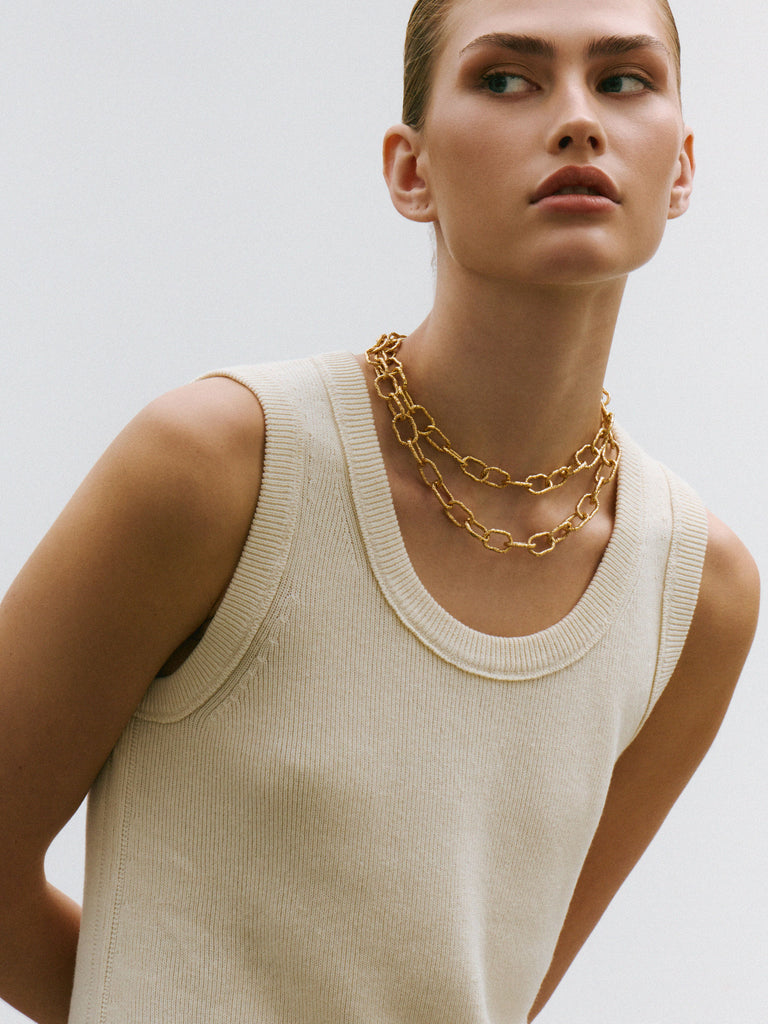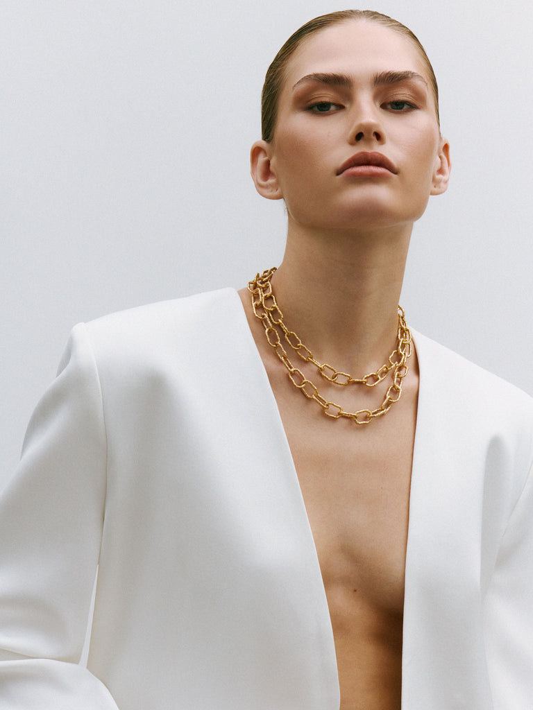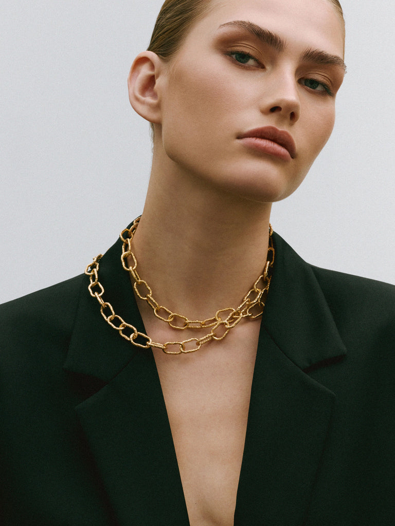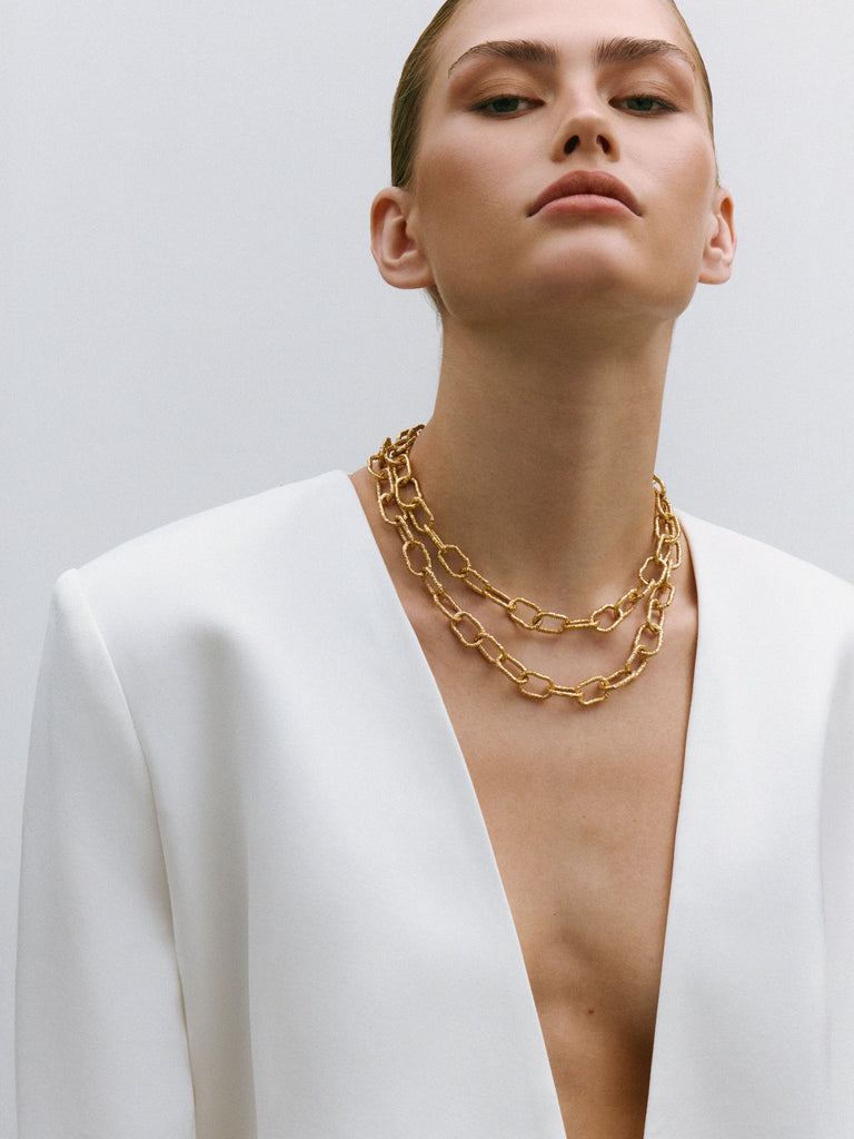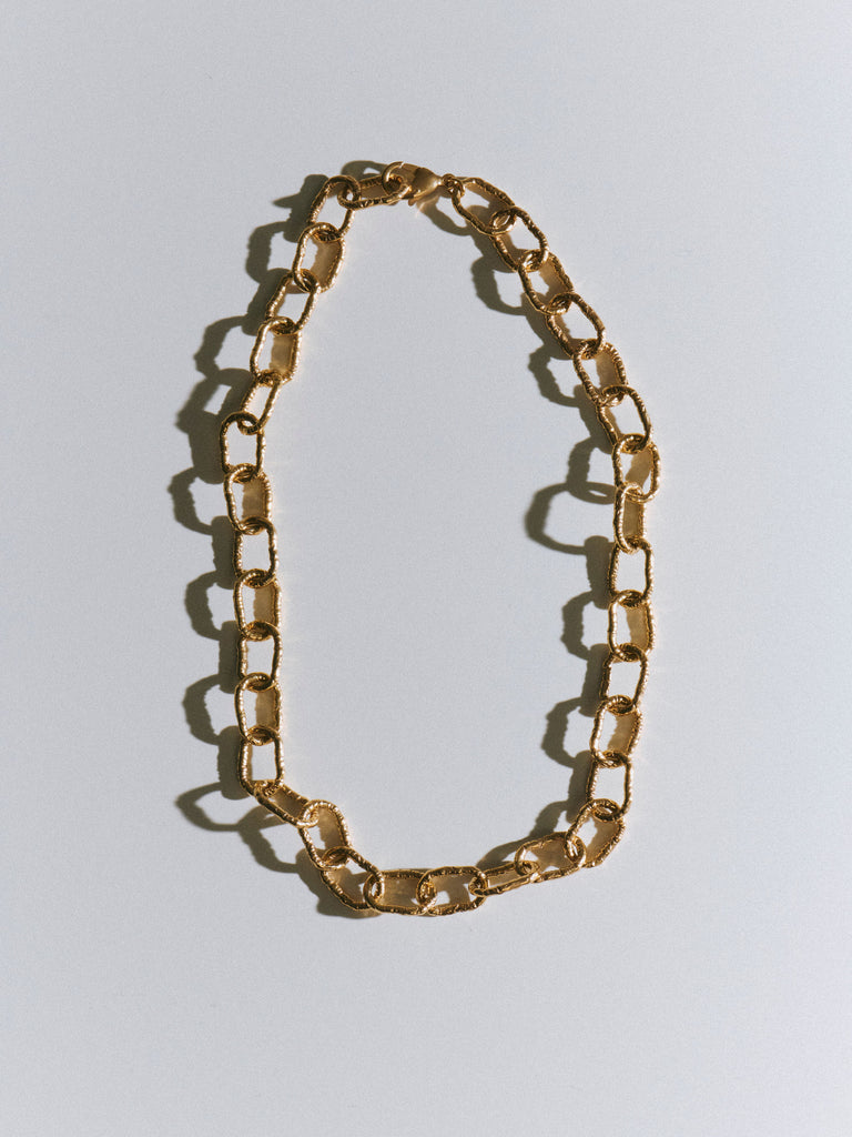The Unity Large Link Necklace is handcrafted from 24kt gold plated recycled bronze.