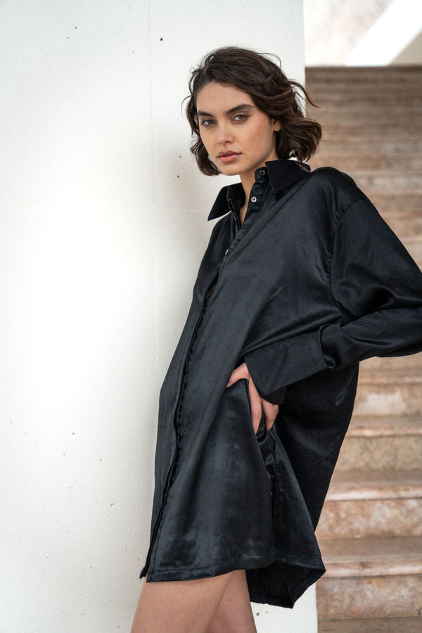 Our Forever Muse silk shirt dress is our favourite trans seasonal luxury staple. A style you will always turn to for its sophisticated ease and versatility.