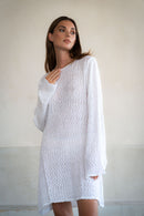 The Jagger dress is crafted from a uniquely textured, semi sheer knitted cotton. Evoking the feeling of summer, to be worn simply as a coverup or dress with a pair of sandals or bare feet.