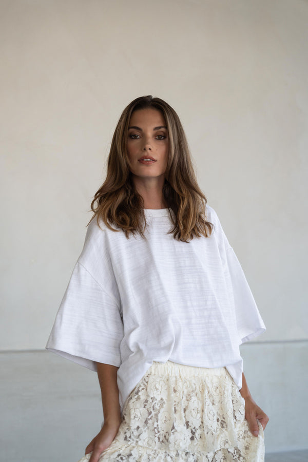 A true wardrobe staple to see you effortlessly through all seasons. This oversized tee is crafted from thick handwoven organic cotton to compliment your favourite looks with ease. True comfort and style.